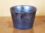 金属釉の上にガラス釉を掛けて 異なる質感が